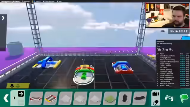 02:04:40TrilluXe und sein Teamkollege diskutieren über die optimale Streckenführung, wobei sie in Erwägung ziehen, zuerst den linken Checkpoint anzusteuern und dann zum rechten zu springen. Sie stellen fest, dass nur Off-Grid-Blöcke verfügbar sind, was Millimeterarbeit erschwert. Es wird überlegt, welchen Checkpoint man am besten zuerst nimmt, wobei der linke als höher eingestuft wird. Die Idee, den blau-gelben Checkpoint als höchsten Punkt zu nutzen und von dort ins Ziel zu fallen, wird favorisiert. Sie überlegen, ob sie den Checkpoint verkehrt herum nehmen oder am Start rückwärts fahren sollen, um ihn richtig herum zu passieren. TrilluXe vermutet, dass der Timer in etwa 10 Minuten grün wird und sie dann starten können. Eine alternative Idee ist, direkt nach dem Start nach rechts über die Wand zu klettern, um so schnell wie möglich ins Ziel zu gelangen. Sie diskutieren verschiedene Blockkombinationen und Höhen, um den schnellsten Weg zu finden. Die Frage, ob man Blöcke in die Hand nehmen darf, um die Möglichkeiten zu testen, wird aufgeworfen, aber vorerst nicht umgesetzt.