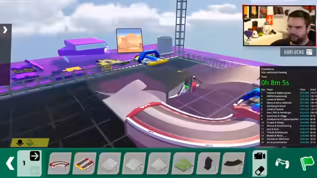 02:13:22TrilluXe erklärt einem Fragenden im Chat den Spielmodus Puzzle Mania, bei dem er und sein Teampartner eine Strecke mit vorgegebenen Start-, Ziel- und Checkpoints bauen müssen. Sie haben eine halbe Stunde Zeit, die Strecke mit vorgegebenen Blöcken zu bauen und beide Checkpoints zu passieren, um ins Ziel zu gelangen. 15 andere Teams nehmen ebenfalls teil, und das Ranking erfolgt anhand der Geschwindigkeit. Die Map ist eine spezielle Twitch Rivals Map. TrilluXe demonstriert eine erste Idee im Stream, bei der man in einen bestimmten Block hineinfährt, eine Kurve nimmt und dann möglicherweise direkt zum blauen Checkpoint gelangt. Er erklärt, dass Blöcke nicht unabhängig vom Grid platziert werden können, aber ineinander gesetzt werden dürfen. Es wird festgestellt, dass es keine zweite Seite an den Blöcken gibt, obwohl dies angezeigt wird. Die beiden warten auf den Start des Timers und diskutieren, dass Virtual Twitch Rivals selbst mitspielt, obwohl er eigentlich Caster ist. TrilluXe erklärt, dass man sich aussuchen kann, ob man mitspielt oder castet.