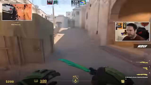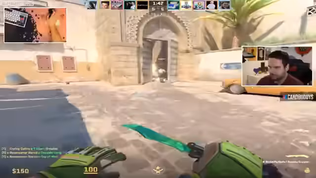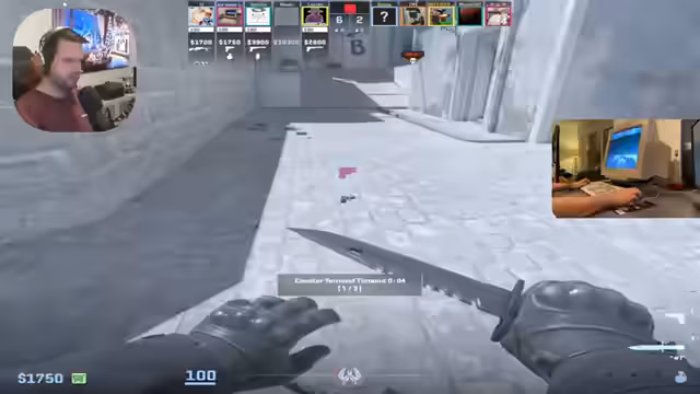 03:12:41Der Streamer präsentiert seine Messer-Sammlung, darunter ein 'Hans-Mann' Messer, das er an seinem Geburtstag selbst gezogen hat und das er als sein 'Birthday-Knife' bezeichnet. Es wird klargestellt, dass ein M9 Marble-Fett von 'Quacks' auf einem anderen Account ist. Während des Spiels auf 'Mirage' äußert ein Teammitglied seine Abneigung gegen die Map, was zu einer spielerischen Neckerei führt. Die Kommunikation im Team ist weiterhin ein zentrales Thema, wobei die Spieler versuchen, sich gegenseitig zu unterstützen und strategische Calls zu machen. Trotz der Herausforderungen und der unterschiedlichen Elo-Niveaus innerhalb des Teams bleibt die Stimmung positiv und fokussiert auf den Sieg.