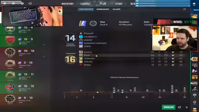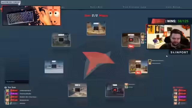 02:34:09Trilluxe äußert seinen Ärger darüber, gegen brandneue Accounts mit verdächtigen Spielweisen zu verlieren, was den Verdacht auf Cheating nahelegt. Er kritisiert Zuschauer, die negative Kommentare abgeben, ohne sich die Hintergründe anzuhören. Er lobt Prosus, einen professionellen Spieler von Big, der im Team ist. Prosus hat sich während des Streams ein Thunfisch-Sandwich zubereitet. Trilluxe erwähnt, dass er für zwei Punkte Credits für verschiedene Dinge ausgeben kann und überlegt, was am sinnvollsten ist. Er erzählt von seinen Erfahrungen mit Case Openings in CS:GO, bei denen er oft Pech hatte, aber auch einmal ein Butterfly Sapphire Messer gezogen hat. Er erinnert sich an eine LAN-Party, bei der ein Freund ihm ein Butterfly Emerald Messer geschenkt hat. Er lobt den Ehrenmann, der ihm das Messer gegeben hat. Er diskutiert mit Prosus über die Wahrscheinlichkeit von Cheatern im Spiel und analysiert verdächtige Profile von Gegenspielern, insbesondere Gregor, der mit niedrigem Faceit-Level eine ungewöhnlich hohe KD hat.