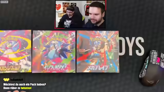01:53:31Es wird erklärt, dass Neukunden über spezielle Links 15 Euro Whatnot-Guthaben erhalten. Trotzdem zahlen einige Nutzer bei den aktuellen Pack-Auktionen drauf, was nicht nötig wäre. Es wird empfohlen, die 15-Euro-Bundles zu nutzen, um nicht mitbieten zu müssen. Der Fokus liegt auf dem Wunsch der Zuschauer nach bestimmten Karten wie Glurak und es wird darauf hingewiesen, dass Sofortkauf-Artikel nicht unterschrieben werden können, da sie sich im Lager befinden. Die Zuschauer werden ermutigt, die Sofortkauf-Optionen in der App zu nutzen, um die 15-Euro-Packs zu finden. Es wird festgestellt, dass viele AR-Karten gezogen werden und die EX-Karten oft an den AR-Karten kleben. Captain und Black Viper nutzen die 5 Booster Angebote, wobei betont wird, dass bereits 200 User dies getan haben. Abschließend wird darauf hingewiesen, dass es am Ende ein Giveaway für alle Käufer gibt, bei dem ein komplettes neues Display verlost wird.