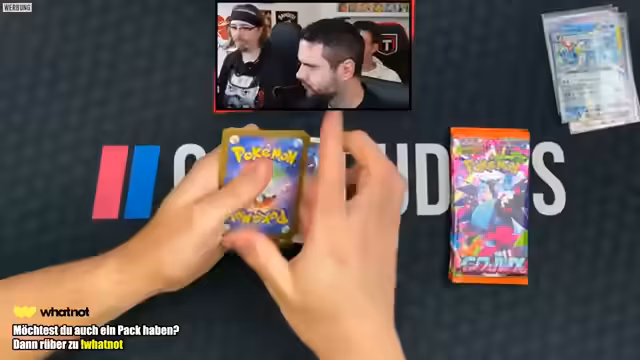 00:23:10Das Stream-Format wird konkretisiert: Die Streamer halten Pokémon-Karten in die Kamera, die in Auktionen auf WhatNot versteigert werden. Der Höchstbietende erhält die geöffneten Karten. Sofortkäufe werden direkt nach Hause geschickt, während die in der Mitte platzierten Auktionspacks live geöffnet werden. In einer ersten Runde werden sechs Booster Packs geöffnet, die Hits wie eine Secret Rare und ein EX-Pokémon enthalten. Die Streamer betonen, dass das Bieten moderat ausfallen solle, da sehr viel Kartenmaterial zur Verfügung steht und eine Wiederholung des Streams angedeutet wird.