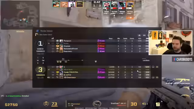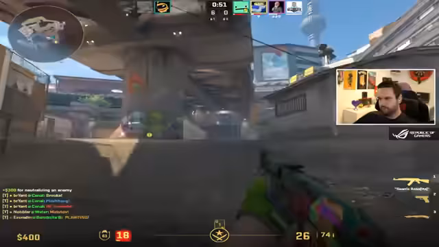 02:34:02Die Runde startet mit hohem Druck und unmittelbaren Aktionen. Das Team bespricht schnell die nächsten Schritte, wobei die Kommunikation über die bevorstehenden Aktionen in den Zonen 'Plateau', 'B' und 'Lang' im Vordergrund steht. Ein Spieler wird eliminiert, und die Lage erfordert sofortiges Agieren, um den gegnerischen Vormarsch aufzuhalten. Es wird über die Platzierung von Smokes und Flashes diskutiert, um den Gegnern den Weg zu versperren und sich selbst eine bessere Position zu verschaffen.