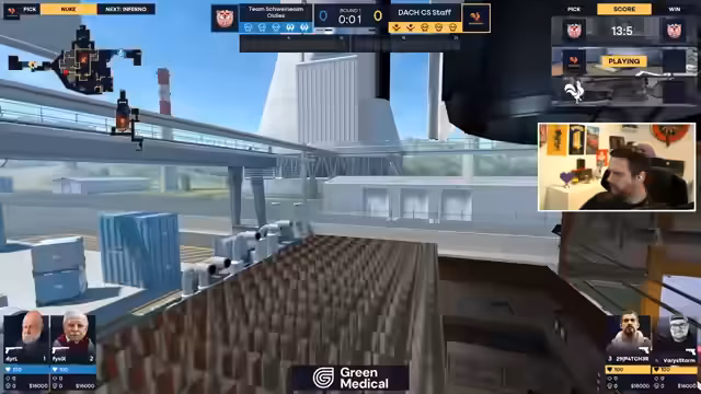 00:58:38Auf DE_Trake gewinnen die Oldies klar mit 13:5 und starten nun auf dem Gegner-Pick DE_Nuke. Die Caster sind gespannt, ob DACHCS Staff hier unerwartete Taktiken vorbereitet hat. Für die Oldies ist Nuke inzwischen eine der stärkeren Maps, besonders dank Tobi, der für die Outside-Position bekannt ist. Ein Abstecher zu persönlichen Themen folgt, in denen die Caster über die schlechte Kaffeequalität und die langen Zugfahrten zu anstehenden Events sprechen. Schließlich geht es zurück zum Spiel auf DE_Nuke. Die ersten Runden laufen, und die Oldies zeigen erneut eine starke Leistung. Der erste Kill geht an Patrick, während Physics wieder durch guten Aim auffällt. Gleichzeitig sorgt ein unerwarteter Move von Varys Storm aus der Verzweiflung für den einzigen Kill von DACHCS Staff in dieser Runde.