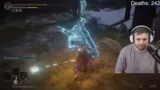 00:10:12Nach zahlreichen gescheiterten Versuchen identifiziert der Streamer die Elektrowelle als die größte Hürde. Diese Angriffsform, bei der Radahn Schwerter in den Boden rammt und eine Welle beschwört, scheint für ihn undodgebar zu sein, da der gesamte Bereich für mehrere Sekunden Schaden verursacht. Obwohl er alle möglichen Ausweichmanöver ausprobiert – Doppelsprung, Sprinten, Zurückweichen – wird er bei jedem Versuch 19 bis 26 Mal hintereinander getroffen. Der Kampf wird als extrem frustrierend empfunden, da er ohne das Beherrschen dieser Attacke nicht zu gewinnen scheint und keine Möglichkeit besteht, dies herauszufinden.