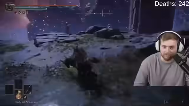 04:24:25Trymacs verläuft sich weiterhin in der Burg und sucht verzweifelt nach einer Gnade. Er findet keine und ist frustriert darüber, dass das Gebiet so schwer ist. Er kämpft gegen einen Baumgegner und stellt fest, dass dieser sehr stark ist. Er stirbt und verliert seine Runen. Er findet schließlich eine Gnade und ist erleichtert. Er stellt fest, dass das Gebiet brutal ist. Er fragt sich, ob er mit der neuen Waffe besser ist. Er findet einen Safe-Spot und gibt seine Runen aus. Er findet einen Sonderblitz und besiegt einige Gegner. Er rutscht ab und findet sich in einem neuen Gebiet wieder. Er klettert über einen Drachen und findet einen Runenbogen. Er kämpft gegen einen Gargoyle und beschließt, diesen nicht anzugreifen, da er ihn bereits besiegt hat. Er holt sich seine Runen und eine goldene Saat. Er findet einen Hebel und öffnet eine Tür. Er hat Angst vor Falschern und stirbt oft an diesen. Er kämpft wieder gegen den Baum und rastet an der Gnade.