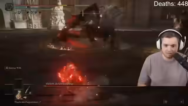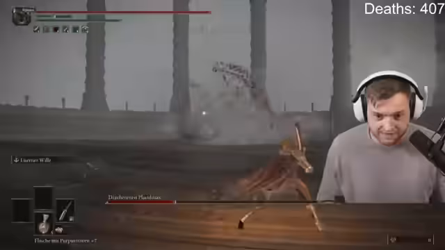 00:21:27Der Streamer kehrt nach mehreren gescheiterten Versuchen zum Boss zurück, wobei er den beschwerlichen Weg erneut bewältigen muss. Er kritisiert die Gegner und die Gestaltung des Weges, die seiner Meinung nach unnötig frustrierend sind. Trotz der Schwierigkeiten versucht er, sich die Positionen zu merken, an denen er herunterspringen muss, um Zeit zu sparen. Der Streamer analysiert die Angriffe des Bosses und versucht, Strategien zu entwickeln, um diesen auszuweichen und Schaden zu verursachen. Er stellt fest, dass der Kampf sehr lange dauert und seine Waffe trotz maximaler Verbesserung wenig Schaden verursacht. Der Streamer experimentiert mit verschiedenen Taktiken, um den Boss zu besiegen, und äußert seine Frustration über die unvorhersehbaren Angriffe und die geringe Effektivität seiner Angriffe. Er stirbt mehrmals durch Feuerattacken des Bosses.