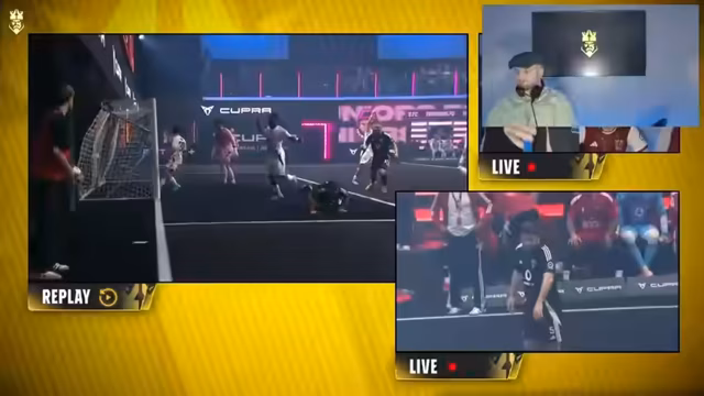 02:05:55Das größte Kings League Derby beginnt. Die Kaktus Kickers starten mit Johnny, einem ihrer stärksten Spieler, im 1-gegen-1. Das Spiel entwickelt sich schnell und die gegnerische Mannschaft nutzt eine Chance zum frühen Tor und geht in Führung. Dieser frühe Treffer ist ein herber Rückschlag und weckt Erinnerungen an den frustrierenden Start am Vortag. Die Kaktus Kickers haben nun den Druck, schnell auszugleichen und das Spiel zu kontrollieren, um die Niederlage im Derby zu vermeiden und ihre Moral zu stabilisieren.