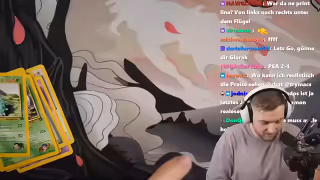 01:55:03Der Streamer öffnet Gym Challenge First Edition Booster und bedankt sich bei den Zuschauern, die dies ermöglichen. Er kommentiert die gezogenen Karten, darunter Rocket Secret Experiment, Nidorina und Duplikate. Besonders hervorgehoben wird Sabrinas Abra für sein Artwork und die Lichteffekte. Es wird spekuliert, wann die erste Holo-Karte gezogen wird. Der Streamer plant, die guten Karten zum Graden einzuschicken. Er zieht Karten wie Sabrinas Psyche-Control und Dictat von Brock und äußert seine Begeisterung für die OG-Trainer Karten. Die Trainer-Holo wird als Fehlgriff betrachtet, da er bereits alle vier Trainer besitzt. Es wird über den Wert der Karten diskutiert, wobei eine Trainer-Holo nur etwa 70 Euro wert ist, während das Display 20.000 Euro gekostet hat. Trotz des schlechten Starts bleibt er optimistisch und zieht Karten wie Rockets Minefield Gym, Sabrina's Hypno und Giovanni's Mauzi. Es wird über das Artwork und die Seltenheit bestimmter Pokémon Karten gesprochen, darunter Misties Enton und Sabrinas Enton. Der Streamer zieht Giovanni's Nidokreen und überlegt, welche Karten er sleeven soll.