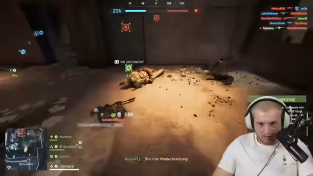 01:08:11Der Stream beginnt mit einer sehr aktiven und erfolgreichen Runde im Helikopter. Das Team ist am überleben und dominiert das Spiel, indem es gegnerische Panzer und Spieler anvisiert und eliminiert. Es werden zahlreiche Kills erzielt, was zu einem deutlichen Punktvorsprung führt. Streamer und Teamkollege Hanky wird als extrem guter Pilot gelobt, der es ermöglicht, aus sicherer Distanz auf Ziele zu schießen und das Spiel zu kontrollieren. Das Team gewinnt die Runde deutlich, was bei den Gegnern im Chat für Frustration und Flame sorgt.