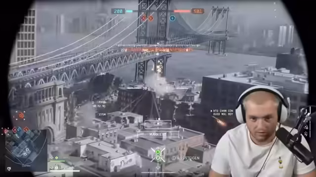 00:18:50Der Streamer wechselt zu Battlefield 6 und bereitet sich mit dem erfahrenen Spieler Hanky auf eine Strategie vor. Das Ziel ist es, einen Helikopter auf der Map Manhattan Bridge zu kontrollieren. Auf der richtigen Seite der Map spawnt der Helikopter ohne Gegner und gewährt eine massive taktische Überlegenheit. Die Strategie besteht darin, sofort den Heli zu besetzen und als unbesiegbare Luftübermacht zu agieren, um feindliche Fahrzeuge und Infanterie systematisch auszuschalten.