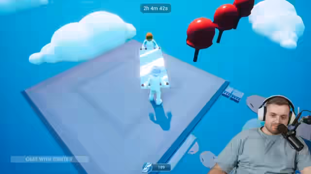 02:50:37Nach mehrmaligen Fehlversuchen bei den Parallelsprüngen kommt es zu einem technischen Problem. Das Mikrofon des Streamers funktioniert nicht mehr, was die Kommunikation mit seiner Partnerin unterbricht. Der Streamer muss sein Interface neu starten, was zu einer kurzen Pause im Gameplay führt. In der Zeit der technischen Unterbrechung werden Giveaways für die Community durchgeführt, bis die Technik wieder einsatzbereit ist und der Stream fortgesetzt werden kann.