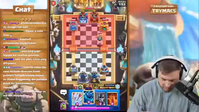 01:48:28Die Streamer analysieren ihre Clash Royale 2v2 Matches und passen ihre Strategie an. Nach einem Sieg mit 33 Trophäen Gewinn, stellen sie fest, dass sie gegen gute Gegner gespielt haben, die knapp in den Top 10.000 waren. Sie diskutieren über den Einsatz von Pfeilen und Runenriesen, um den King Tower nicht zu aktivieren. Es wird die Bedeutung des richtigen Timings beim Einsatz von Spells betont, insbesondere der Pfeile gegen Crackerinnen, um unnötige Niederlagen zu vermeiden. Nach einer Niederlage von 30 Trophäen wird eine Fernrohr-Decke vorgeschlagen und der Einsatz von Cage und anderen Karten in der Luft besprochen. Sie analysieren die Spielzüge des Gegners und passen ihre Strategie an, um Value aus ihren Karten zu ziehen. Es wird die Bedeutung von Teamwork und Kommunikation hervorgehoben, um die richtigen Entscheidungen im Spiel zu treffen. Nach mehreren verlorenen Spielen analysieren sie ihre Fehler und passen ihre Strategie an, um wieder erfolgreicher zu sein. Sie diskutieren über den Einsatz von verschiedenen Karten und die Bedeutung des richtigen Timings beim Einsatz von Spells.