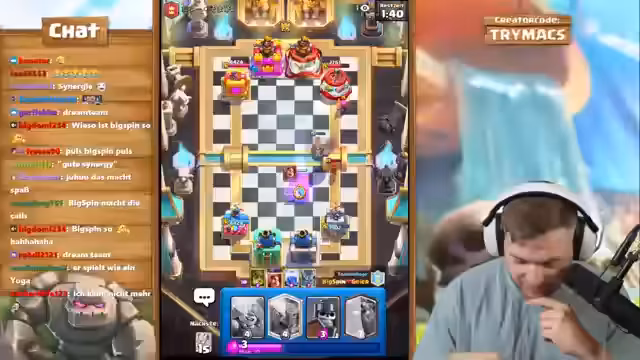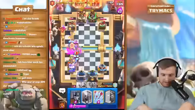 00:36:44Die Live-Schauen der Clash Royale-Spiele werden durch eine intensive Teamkommunikation geprägt. Der Streamer gibt Anweisungen und reagiert oft frustriert auf die Spielentscheidungen seines Partners Bixby, insbesondere bei verpassten Chancen oder suboptimalen Zügen. In einem Spiel nutzen sie erfolgreich ein Inferno-Deck, um einen komplexen Zug auszuführen und einen Turm zu zerstören. Ein anderes Spiel wird knapp verloren, da ein gegnerischer Zug mit einem Lightning-Spell nicht rechtzeitig geblockt wurde. Trotz kleiner Erfolge bleiben die Verluste überwiegen und die Ranglistenplatzung verbessert sich nur langsam.