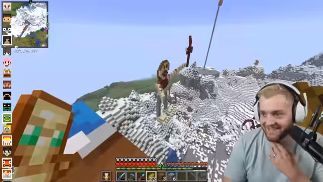 04:58:13Der Streamer besucht Gomme, der gerade an einer riesigen Statue arbeitet. Gomme erklärt, dass er den Happy Ghast als Bauhilfe nutzt, was ihm ermöglicht, effizienter von unten zu bauen, ohne aufwendige Gerüste. Er plant, hinter der Statue ein riesiges Stargate zu errichten, aus dem die Figur mit einem Zauberstab hervortritt, um die 'Hero-Dimension' wiederzubeleben. Die Idee, Wasserblasen mit dem Zauberstab zu schießen, erinnert an ein früheres Minecraft-Projekt namens Minecraft Hero. Die Nachbarschaft zu Gomme wird positiv hervorgehoben, da er im Gegensatz zu früheren Nachbarn tatsächlich bauen kann. Gomme gibt an, bereits sieben Tage an dem Projekt gearbeitet zu haben und betont, dass dies erst die Hälfte der geplanten Statue ist.
