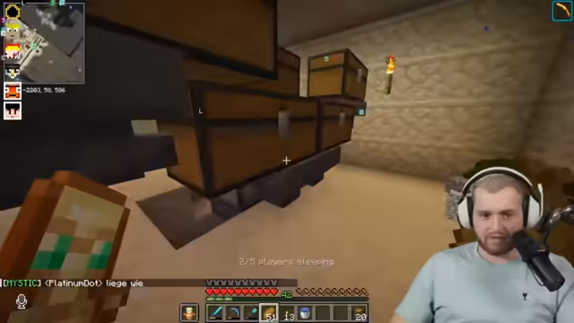02:19:28Die Diskussionen drehen sich um den Fortschritt des Bauprojekts, insbesondere um das Abtragen des Geländes, welches als 'Dulli-Arbeit' bezeichnet wird, aber bei Fertigstellung große Zufriedenheit verspricht. Es wird festgestellt, dass das Entfernen des Randes in den letzten Tagen sehr zeitaufwendig war. Die Spieler bemerken, dass im ausgehobenen Bereich viele Kreaturen spawnen, was die Notwendigkeit einer besseren Ausleuchtung unterstreicht. Es wird über die Existenz eines Slime-Chunks in der Nähe spekuliert, was die Möglichkeit einer Schleimfarm eröffnen würde. Die Idee, eine Trial Chamber für automatisiertes Farmen zu nutzen, wird erörtert, jedoch schnell verworfen, da die Kisten nur einmal geöffnet werden können und somit nur Essen oder anfängliche Waffen, nicht aber dauerhafter Loot, gewonnen werden könnte. Trotzdem wird das Bauen an sich als lohnenswertes Projekt betrachtet. Ein Spieler hat bereits ein Inventar voll Blackstone gesammelt, was als nützlich für die Basis angesehen wird. Die technische Performance des Servers wird kritisiert, da einige Spieler unter starken Lags leiden, während andere keine Probleme haben.