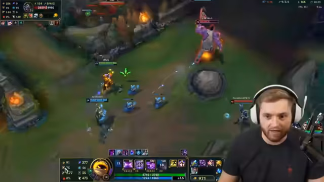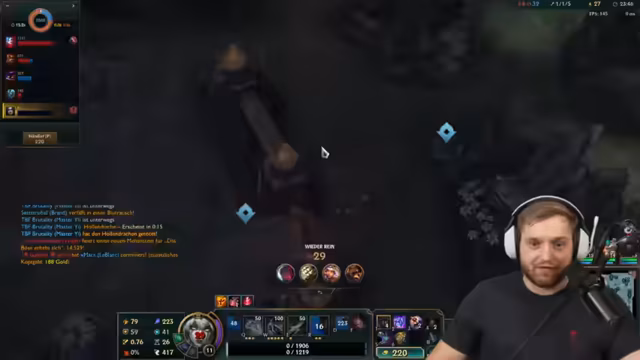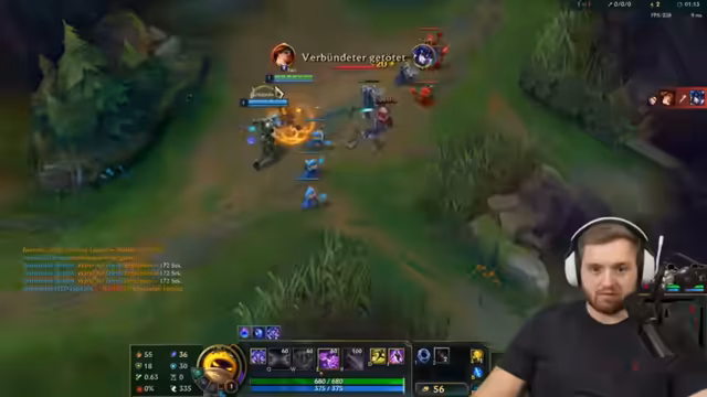 05:05:41Der Streamer ist mitten in einem hochintensiven LoL-Teamfight, der Bottom-Lane. Es geht um unklare Positionen und gegenseitige Angriffe. Es fällt der Satz 'Der ist gefeedet? Ich bin nicht bei dir.', was Verwirrung über den Standort eines Gegners zeigt. Der Streamer beschreibt die Situation als 'geisteskrank viele Kills klauen' und überlegt, ob ein Gegner noch sein Ultimativ-Skill hat. Die Kommunikation mit dem Team ist entscheidend und er fragt nach Zuständen wie 'Kannst du hier clearn?!' und 'Hast du noch Ult?', um die nächsten taktischen Schritte zu koordinieren. Der Fokus liegt auf der Kontrolle des Drakes und der gegnerischen Ultimate-Skills.
