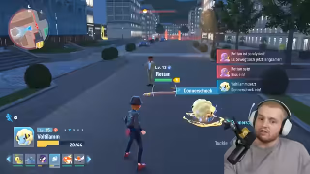 00:13:04Der Streamer kritisiert die fehlende Synchronisation in einem A-Titel wie Pokémon, der sich millionenfach verkauft hat und zwei Jahre Entwicklungszeit hatte. Er beschließt jedoch, die 'pinke Fanbrille' aufzusetzen und das Spiel zu genießen. Nach einer kurzen Einführung in die Stadtentwicklung von Illumina City wird er in eine erste Mission verwickelt, bei der seine Reisetasche von einem Pampam gestohlen wird. Dies führt zu einem Tutorial-Kampf, bei dem das neue Kampfsystem vorgestellt wird. Es ist nicht rundenbasiert, sondern aktionsbasiert mit Cooldowns für Attacken, was der Streamer als erfrischend empfindet. Er wählt Endivie für den Kampf und lernt, wie man Attacken kombiniert und einsetzt. Er ist begeistert von der Möglichkeit, Kombos zu machen und die Dynamik des Kampfes zu nutzen.