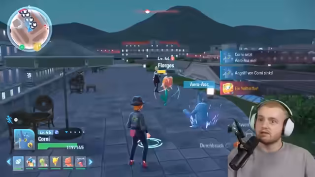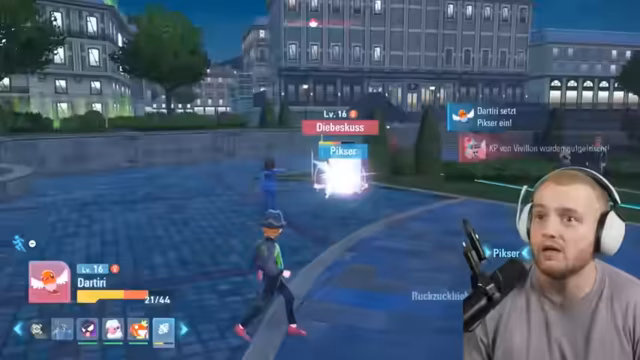 03:17:13Nach dem Rangaufstieg wird der Streamer von Team MZ im Hotel angesprochen. Es entspinnt sich eine Diskussion über die Motivationen der Teammitglieder, insbesondere von Kaelin, dessen Hintergrundgeschichte als Modedesigner im Konflikt mit seiner Oma beleuchtet wird. Diese erzählerischen Einschübe geben Einblicke in die Charaktere des Spiels. Bevor es zum nächsten Kampf kommt, entwickelt sich das Pokémon Dartignis weiter, was neue Attacken wie Flügelschlag freischaltet. Der Streamer zeigt sich begeistert von der Möglichkeit, Attacken zu verwalten und sein Team strategisch anzupassen. Der darauffolgende Kampf gegen Kaelin wird mit einem überlegenen Skarabon bestritten, das weiterhin durch seine physische Angriffskraft beeindruckt.