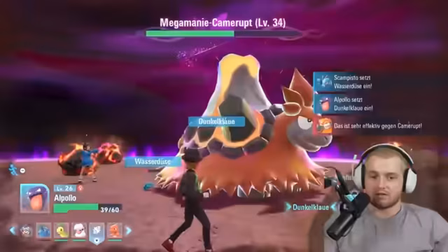 05:27:39Der Kampf gegen Kamerupt beginnt, wobei der Streamer die Nicht-Rundenbasiertheit des Kampfsystems hervorhebt, die schnelles Handeln und Pokémon-Wechsel erfordert. Trotz seiner Mega-Garados-Entwicklung und effektiver Wasserattacken erweist sich Kamerupt als äußerst widerstandsfähig, was auf ein erhebliches Unterleveln des eigenen Teams hindeutet. Der Kampf ist langwierig und erfordert den Einsatz von Items zur Wiederbelebung und Heilung. Die Mega-Entwicklung von Garados zu Mega-Garados wird erstmals im Kampf eingesetzt und gefällt dem Streamer optisch sehr gut. Trotz des Sieges wird die Schwierigkeit des Kampfes und die Notwendigkeit, weitere Level zu sammeln, betont. Die Mega-Essenz-Sammlung während des Kampfes ist entscheidend, um die Mega-Form aufrechtzuerhalten.