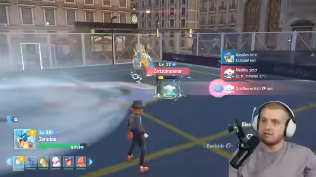 01:36:18Der Streamer bemerkt die vielen französischen Begriffe im Spiel und fragt sich, ob das Pokémon-Spiel an Frankreich angelehnt ist, insbesondere mit dem Turm in der Mitte, der an Paris erinnert. Er erlebt die Entwicklung seines Nanu und Leo, die er als 'cool' bezeichnet, aber die Animation mit einer '3' bewertet. Er entdeckt Megakristalle, die mit Pokémon-Attacken zerstört werden können, um Mega-Splitter zu erhalten. In einem neuen Wildsektor fängt er ein Karpador und ein Bithara. Er freut sich über die Möglichkeit, Karpador zu fangen, da es sich später zu Mega-Garados entwickeln kann, was er als eine der heftigsten Mega-Evolutionen im Spiel ansieht. Das Spiel bietet ihm die Möglichkeit, von hohen Orten zu springen, dank eines Smart Rotom, was die Erkundung der Dächer ermöglicht.