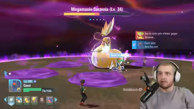 01:53:21In Illuminas-City trifft der Streamer auf Gaven von der 'Faust der Gerechten', der die Abschaffung der Wildsektoren fordert. Der Streamer wird zu einem Pokémon-Kampf herausgefordert, den er gewinnt. Er erhält drei Nebenmissionen, die sich als Hauptmissionen entpuppen, da sie erfüllt werden müssen, um im Spiel fortzufahren. Eine dieser Missionen führt ihn zum Friedhof Bonne Nuit, einem neuen Wildsektor, wo er einen verlorenen Ring suchen soll. Er fängt neue Pokémon wie Pupuncho und Nebulak und freut sich über die potenziellen Mega-Entwicklungen seines Teams, darunter Mega-Gengar und Mega-Ampharos. Er entdeckt, dass sein Endivier sich zu Loreblood entwickelt und die Attacke Gigasauger lernt, was die Notwendigkeit von Heilungsitems reduziert. Er ist überrascht von der Stärke eines Elite-Knuffensers, das sein gesamtes Team auslöscht, und muss sein Team im Pokémon-Center heilen.