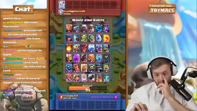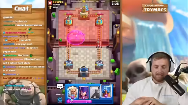 00:00:00Der Streamer stellt sein aktuelles Projekt vor, das sich auf Clash Royale konzentriert. Es handelt sich um einen fünf Tage alten Free-to-Play-Account, auf dem der gesamte Pass bereits geöffnet wurde. Das Ziel ist, mit Big Spin an der Mega-Auswahl-Herausforderung teilzunehmen, bei der ab vier Siegen sogar ein legendärer Joker winkt. Die Motivation ist hoch, auch weil der Streamer süchtig nach dem Projekt ist und die Community mitnehmen möchte.