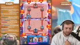 01:15:00Der Streamer macht 12 von 14 Spielen gewonnen, was ihm ein Plus von 27 Trophäen einbringt. Seine Strategie zielt darauf ab, im hohen Arenabereich möglichst starke Passbelohnungen zu erhalten, weshalb er mit seinem Kartenlevel aufsteigt. Ein Spiel zeigt, wie wichtig das Timing ist, als eine Geisterkaiserin perfekt platziert wird, um einen Turm anzugreifen. Ein späterer Sieg gelingt durch einen sehr starken Push mit vielen Karten auf dem Feld, obwohl der Gegner denkt, er hätte gewonnen.