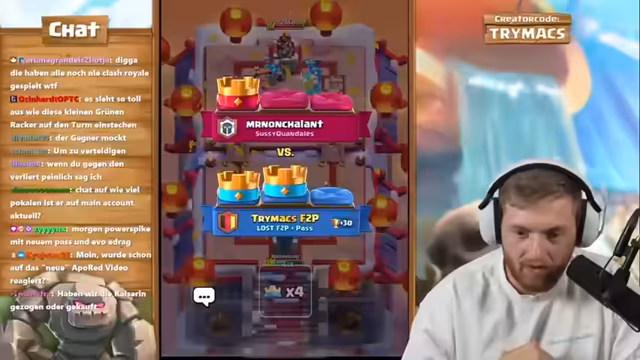 03:12:32Der Streamer fasst sein Free-to-Play-Projekt zusammen und betont, dass er es geschafft hat, in 5 Tagen die 5.500 Trophäen zu erreichen, obwohl er nur Level-9-Pfeile hatte und gegen viele überlevelte Gegner spielen musste. Trotzdem hat er den gesamten Pass nicht einmal vollständig eingesammelt. Der Fokus liegt jetzt auf dem Free-to-Play-Plus-Pass-Projekt, bei dem er auf starke 4- und 5-Sterne-Lucky-Drops hofft, insbesondere Elite-Joker oder ein Book of Books.
