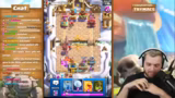 02:55:37Zu Beginn des Streams wird eine Sprengung gestartet, die als die größte in der Geschichte von Craft Attack bezeichnet wird. Der Streamer ist besorgt, da er keine Rage-Kisten mehr aus Level-Kisten erhalten kann und der Store keine entsprechenden Kisten mehr anbietet. Dennoch wird der Plan umgesetzt, mit einem Level-1-Account gegen stark Gegner anzutreten. Er wählt sein Deck mit drei Musketieren, einem Heilgeist und stellt fest, dass die drei Musketiere mit ihren Nahkampfangriffen extrem stark sind, besonders da sie auch noch Level 16 sind und ein hohes Leben haben. Die Strategie ist, die Musketiere so zu spielen, dass der gegnerische Turm Schaden nimmt.