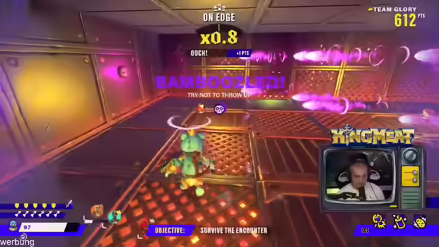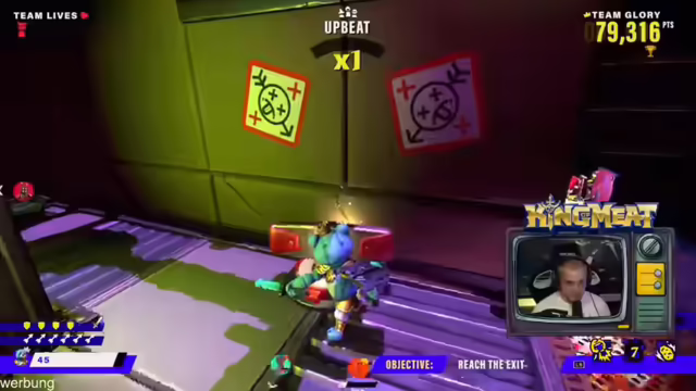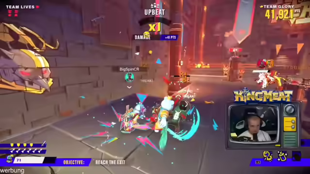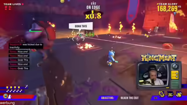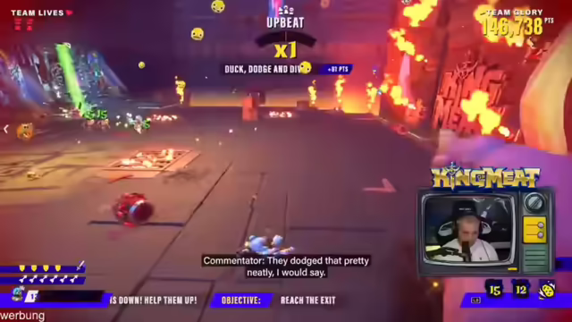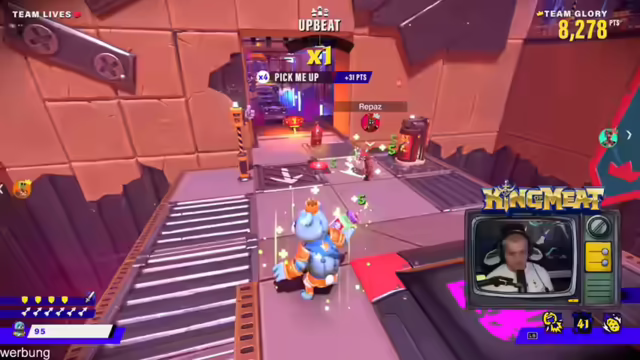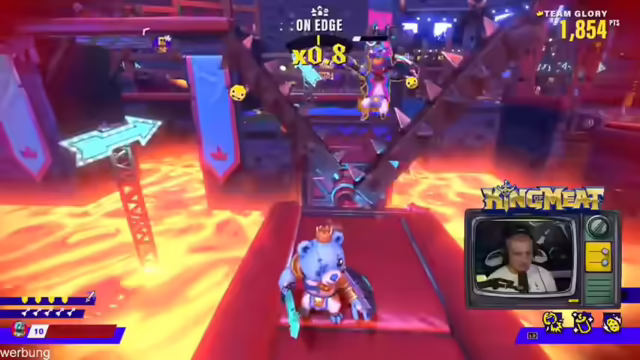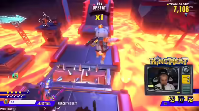 02:38:55Reapers soll die Shortcuts öffnen, während die anderen Spieler hochgehen. Es wird festgestellt, dass die Map nur Silber gebracht hat. Ein Spieler muss aufs Klo, obwohl es auf Zeit geht. Das Team betritt die nächste Map und überlegt, ob es die letzte Map spielen soll. Es wird beschlossen, die billigen Punkte mitzunehmen. In der neuen Map müssen Würstchen ins Ziel gebracht werden. Die Spieler müssen auf Plattformen stehen, damit ein Schild gebaut wird. Es wird festgestellt, dass jeder seinen eigenen Weg gehen muss. Eine Plattform kommt zurück und tötet einen Spieler. Es gibt Probleme mit einem Spieler, der das Spiel nicht versteht. Reapers wird für seine Leistung gelobt. Ein Spieler wird von einer Plattform geschickt, aber es ist zu früh. Es gibt Schwierigkeiten mit den Plattformen und den Gegnern. Am Ende wird beschlossen, das zweite Level noch einmal zu spielen, da es 180.000 Punkte gebracht hat. Das Team geht zu einem goldenen Amboss, um sich hochzuleveln und neue Special Moves freizuschalten.