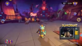 01:51:40Die zweite Runde beginnt mit einem Jump'n'Run-Level, das die Spieler auf die Probe stellt. Romathra und Big Spin arbeiten an der Navigation und vermeiden Bodyblocks, während sie versuchen, die Map so schnell wie möglich zu absolvieren. Danach folgt ein Kampfabschnitt, bei dem sie Geschütztürme bekämpfen und Hot Potatoes einsetzen, um Gegner zu besiegen. Teamkommunikation und strategisches Werfen der Gegenstände sind entscheidend für den Erfolg.