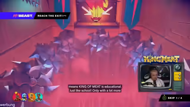 04:57:06Nach dem Turnier wird auf die „King of Meat“-Community-Challenge hingewiesen, bei der Streamer um 10.000 Twitch-Subs kämpfen können. Der Stream kündigt einen Ausblick an mit den Worten „War sehr, sehr geil. Morgen und übermorgen Stream“ und bedankt sich beim Publikum für die Teilnahme. Das Highlight-Video und die Verabschiedung leiten das Ende des vierstündigen Events ein.