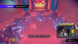 03:28:25In einem neuen, schwierigen Jump'n'Run-Dungeon erfordert der Erfolg eine exakte Koordination. Metashi gibt ruhige Anweisungen, während bei den anderen Teams, insbesondere bei Big Spin, mehr Chaos herrscht. Spieler müssen zeitversetzt und auf bestimmte Knöpfe reagieren. Ein Missverständnis führt dazu, dass Big Spin den Clip eines anderen Teams gezeigt bekommt, was zu Verwirrung und einem Schmunzeln führt. Die Showrunner reagieren auf die chaotische Performance und kommentieren, dass die Beobachtung an sich unterhaltsam sei.