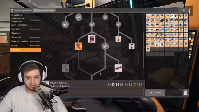 01:28:36Das Hauptziel ist die Herstellung von 200 Einheiten Raketenkraftstoff. Dafür werden zuerst die benötigten Ressourcen geprüft. Es stellt sich jedoch ein kritischer Mangel an Energiefragmenten heraus. Von ehemals 500 fehlen plötzlich 400, was auf einen Verbrauch durch den Aufbau der Minen zurückzuführen ist. Streamer sind verwundert über den schnellen Verbrauch und versuchen, die fehlenden Mengen durch das Abbauen weiterer Schnecken auszugleichen.