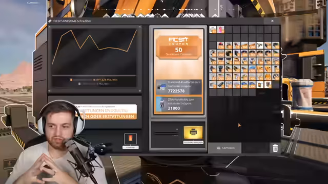 00:59:18Im Endgame wird ein hoch effizientes System implementiert, um die Punkteproduktion zu maximieren. Man baut und schaltet mehrere Schredder an die Produktion an, die kontinuierlich hochwertige Gegenstände wie Warp-Antriebe und Kali-Server zerkleinern und so massiv Punkte generieren. Durch die Erweiterung der Cloud-Speicher kann man die Produktion nahezu endlos aufrechterhalten und führt dieses System stundenlang aus, um die Anzahl der Tickets im Shop maximieren zu können.