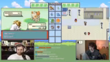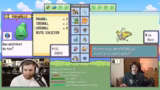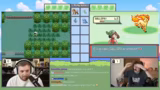 07:38:43Ein Kampf gegen den Rivalen Rokenard wird angetreten. Obwohl Rivalen-Kämpfe als stark gelten, wird dieser als einfach empfunden. Die Mechanik des Double-Battles wird erwähnt, hier aber nicht genutzt. Während des Kampfes wird die Typ-Chart nochmals besprochen, um effektiv kämpfen zu können. Der Streamer gibt zu, als Kind das Spiel ohne die Typen-Regeln gespielt und nur auf das Aussehen der Pokémon geachtet zu haben.