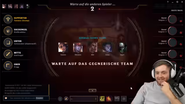 Ein neues Match startet mit einer ungewöhnlichen Bannphase, in der der Gegner Caitlyn bant. Dies führt zu Diskussionen über die Taktik und Champion-Wahl. Der Streamer überlegt, ob er Maokai oder Jhin spielen soll, während sein Partner Support für Lux oder LeBlanc ist. Das Spiel beginnt aggressiv mit einer Invasion des gegnerischen Junglers.