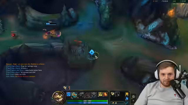 Trotz eines ersten Kills auf der Bottom Lane verliert der Streamer Respekt vor der mechanischen Skill der gegnerischen Vayne, die perfekt seinen Weggeblock ausweicht. Er stellt fest, dass seine Positionierung als ADC ein großes Problem ist und es ihm schwerfällt, Schaden zu machen, ohne zu sterben. Das Spiel bleibt unvorhersehbar.