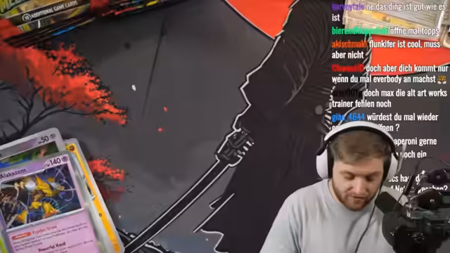01:20:58Der Streamer wechselt zum Öffnen von Pokémon-Karten. Er präsentiert das "Mega Evolution" Set und das "Erhabene Helden" Set. Sein Fokus liegt nicht auf den teuersten Karten, sondern auf den, die ihm persönlich am besten gefallen. Besonders hervorgehoben werden die Karten der Bisa-Samen-Reihe und eines alternativen Lucario-Artworks. Ein erstes Pack wird geöffnet und zeigt bereits interessante Karten.