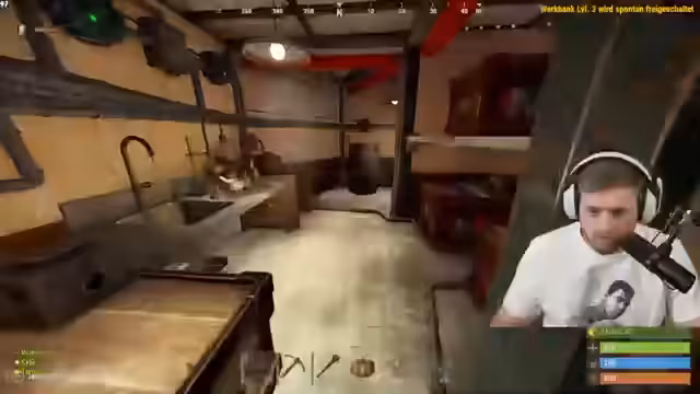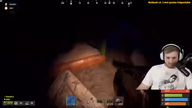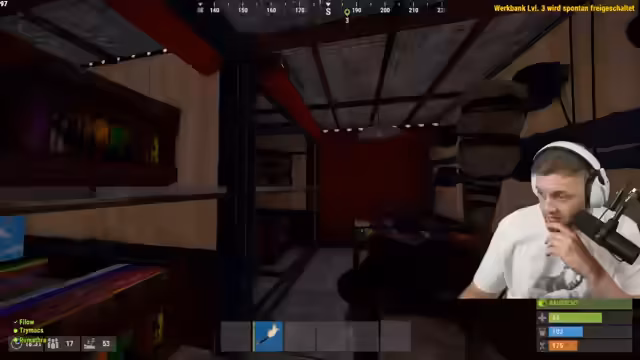 00:06:50Der Stream konzentriert sich auf das Spiel Rust, wobei trymacs sein Ziel offenbart, eine zuverlässige Farm zu bauen, die stündlich 3000 Scrap abwirft. Mit bereits freigeschaltetem Workbench Tier 2 plant er gemeinsam mit Teammitgliedern Romatra und Sebo den Bau einer starken Basis. Die Gruppe hat bereits 50 Spieler online und arbeitet an der Sicherung der Basis mit automatischen Türmen und Windmühlen. Der Streamer zeigt Begeisterung für den Fortschritt.