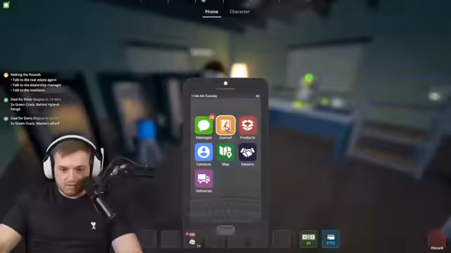 03:10:17Der Streamer verkauft Drogen und schlägt versehentlich Benji. Er mischt Paracetamol in die Drogen und plant, diese über Nacht wachsen zu lassen. Er verkauft Gras günstig, um es loszuwerden. Es wird überlegt, den Müll wegzubringen, um Cash zu machen. Der Streamer plant, mit dem Cash Dealer Chip zu reden und erwägt, das Geld im Casino zu verdoppeln. Er stellt fest, dass Molly keine Drogen mehr hat und plant, sie zu besuchen. Der Streamer möchte mit dem Dealership-Manager reden, um in der Story voranzukommen. Er stellt fest, dass er ein Auto benötigt, um "Making the Rounds" zu machen. Der Streamer wird von einem Mechaniker mit einem Messer bedroht, nachdem er ihn geschlagen hat. Er schaltet eine Zone frei und macht einen Deal. Der Streamer nimmt jeden Deal an, um Kohle zu machen und erklärt Keith zu seinem Rivalen, weil dieser unter 80% vom Marktpreis kaufen wollte. Der Streamer muss seinen Dealer bezahlen, um Nachbestellungen zu ermöglichen und benötigt 6000. Er verkauft Gras an Peggy, die sich vor Polizisten mit ihm treffen will. Der Streamer macht Deals, um Geld zu verdienen und die neue Bude mit Grow-Boxen vollzuklatschen.