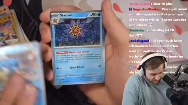 02:10:10Das Streamer beginnt mit dem Opening des Sets 151, das trotz des hohen Preises von 10.000 Euro ohne eine Illustration Rare gestartet wurde. Der Streamer erinnert sich daran, dass er das Set in der Vergangenheit bereits geöffnet hat, wie Obsidian Flames, Paldeas Schicksale und Paldea Evolved, und betont die internationale Bedeutung des Pokémon-Kartenmarktes. Beim Öffnen wird die Chance auf seltene Karten wie ein Godpack oder ein alternatives Artwork diskutiert, wobei das Ziel darin besteht, eine Karte zu ziehen, die in einem früheren Opening verfehlt wurde.