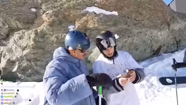 05:41:54Es wurde betont, dass der Airbag genutzt wird, weil die Gruppe aus Amateuren besteht und so das Verletzungsrisiko minimiert wird. Trymacs fragte nach der Vorstufe zum Airbag und erhielt den Rat, einfach gerade hineinzuspringen. Die Gruppe diskutierte über ihren weiteren Plan und entschied sich, noch eine Runde zu fahren. Max wollte die Gondel nehmen, während die anderen mitfahren wollten. Er schaffte es aber doch noch einmal mitzufahren. Später wurde festgestellt, dass Max' Outfit im Chat gefeiert wurde. Die Gruppe fuhr weiter Ski, und Trymacs hatte seinen Chat geöffnet. Hugo entschied, dass er nicht mehr hochfahren möchte, sondern direkt runter. Es gab Diskussionen über die Talabfahrt, die sehr voll sein würde. Jakob gab per Ferndiagnose den Rat, langsam zu machen und abzuwarten, ob die Schmerzen besser werden. Er empfahl Voltaren für die Muskeln. Die Gruppe bedankte sich bei Jakob für seine Hilfe. Es stellte sich heraus, dass Jakob Unfallchirurg ist.