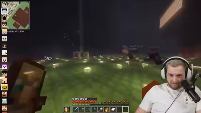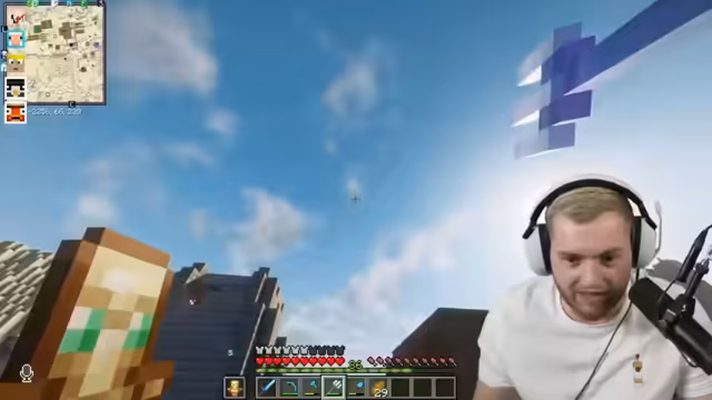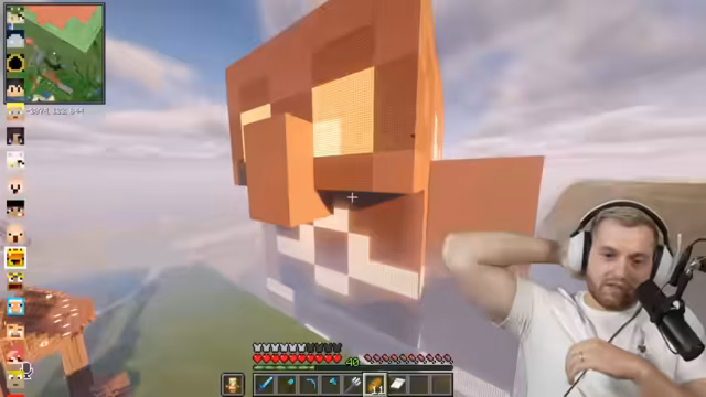 03:14:40Angesichts der bevorstehenden Golem-Eröffnung um 21 Uhr, die nur noch 18 Minuten entfernt ist, beschließt die Gruppe, schnell zu Axels Basis zu fliegen. Trotz anfänglicher Zweifel an Axels Minecraft-Fähigkeiten sind alle überrascht von der Größe und dem Detailreichtum seiner Basis, die an den Lufttempel aus Avatar erinnert. Es wird diskutiert, ob Axel dies tatsächlich alleine gebaut hat. Nach der kurzen Besichtigung eilen alle zum Golem-Event zurück. Adi und der Streamer haben ein großes Feuerwerk vorbereitet. Paul wird symbolisch den letzten Block des Kupfergolems platzieren. Es kommt zu chaotischen Szenen, als versucht wird, sich für die Eröffnung zu positionieren und die Render-Distance anzupassen. Die Gruppe plant, vor der Tribüne zu landen und ihre Totems zu poppen, während Adi und der Streamer das Feuerwerk zünden.