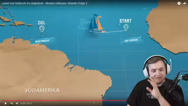 04:23:45Nach den Vorbereitungen geht es endlich los: das Rennen über den Atlantik hat begonnen. Die beiden Teams verlassen den Hafen, und die ersten ernsthaften Herausforderungen sind bereits sichtbar. Mehrere Teilnehmer, darunter auch Streamer-Kollegen, leiden unter starker Seekrankheit und müssen sich erbrechen. Die Crew muss sofort mit dem Hissen der schweren Segel beginnen, was eine körperlich anstrengende Aufgabe darstellt. Der Streamer äußert Bewunderung für die Leistung, gleichzeitig aber auch Mitgefühl für die anfangliche Qual der Crew und die enorme physische und psychische Anforderung der nächsten Wochen.