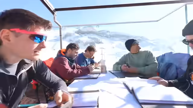 02:57:33Die Gruppe genießt das perfekte Frühjahrswetter mit Sonnenschein und ausreichend Schnee. Max teilt seine ambitionierten Pläne für das nächste Jahr mit: Er will ein achtwöchiges Skibootcamp absolvieren, um der fitteste auf der Piste zu sein. Ein abwechslungsreiches Gespräch über Berufe und Fähigkeiten schließt sich an, bei dem Paul und Adi von ihrer Bankausbildung erzählen und die Komplexität des Ingenieurwesens thematisieren. Auch die beeindruckende und anstrengende Ausbildung zum Helikopterpiloten wird als Beruf mit höchstem Anspruch an die Fliegerei diskutiert.