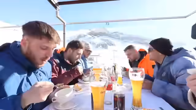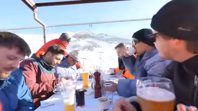02:37:29Durch das durchgehende, intensive Fahren an steilen Pisten stellt sich körperliche Erschöpfung ein, insbesondere bei Max. Aus Sicherheitsgründen wird betont, dass Alkoholgenuss vor dem Skifahren extrem gefährlich ist. Nachdem Max eine kurze Pause zur Erholung genommen hat, kehrt er zurück in die Gruppe. Gemeinsam fahren sie zum geplanten Mittagessen in die Ida-Alm, einem Restaurant, das sie bereits vom Vortag kennen und mit einer schönen Aussicht lockt.