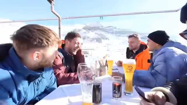 01:07:05Während der Fahrt auf die Piste wird die hohe körperliche Anforderung des Skitrips deutlich. Max äußert starke Schmerzen in den Oberschenkeln und Waden und beschreibt, wie seine Muskeln bei jeder Abfahrt zusammenbrechen. Dies führt zu einer hitzigen Diskussion über körperliche Fitness und die fehlende Vorbereitung, insbesondere auf das cardiointensive Snowboardfahren. Die Gruppe erkennt, dass die Tage ans sportliche Limit gehen und erste Teilnehmer körperlich zusammenbrechen, was eine realistische Einschätzung der Strapazen zeigt.