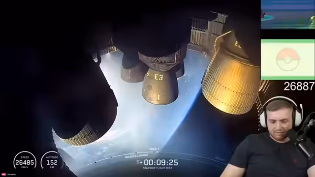 06:22:27Die Teilnehmer schauen den Start von SpaceX Starship Flight 9, der unbemannt ist und hoffentlich explodiert, um ein teures Feuerwerk zu sehen. Der Countdown wird wegen technischer Probleme mehrmals unterbrochen, aber schließlich startet die Rakete erfolgreich. Allein der Booster explodiert später im Golf von Mexiko, was als enttäuschend empfunden wird.